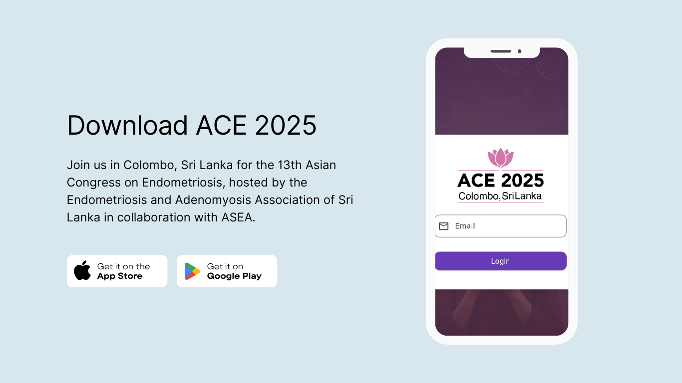 Download App Congress App Registration Link https://forms.gle/WgMajkbJ7pT6HYo76If you have already registered online, your email is in our system.In case the email does not work, kindly register again using the link provided above.Thank you for your understanding and cooperation.App Link – https://ace-colombo-2025.web.app/